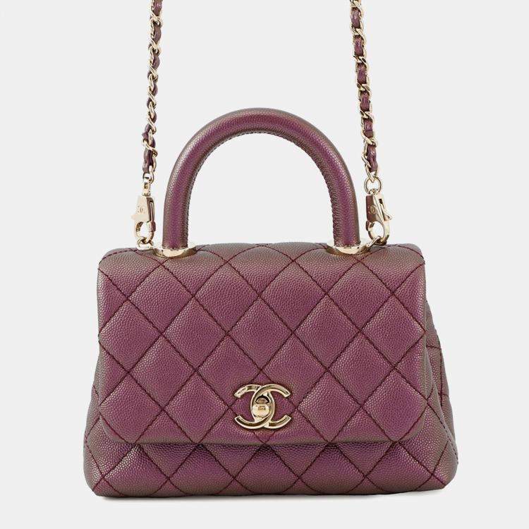 Chanel Coco Handle Matelasse Handbag Metalicpurple Caviar Leather Size Xxs