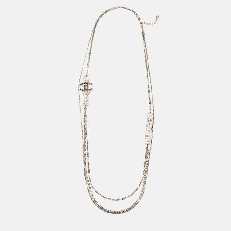 Chanel Coco Love Double Strand Silver Tone Long Necklace