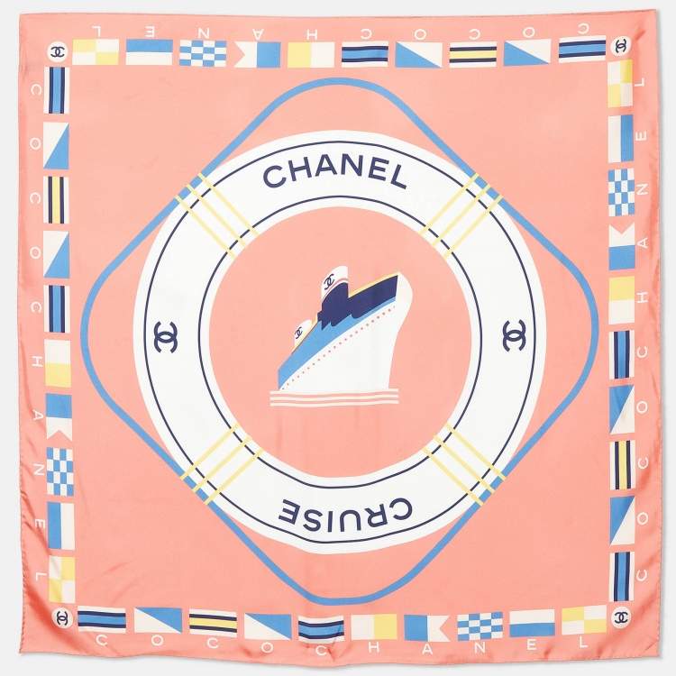Chanel Coral Pink Cruise Print Silk Square Scarf