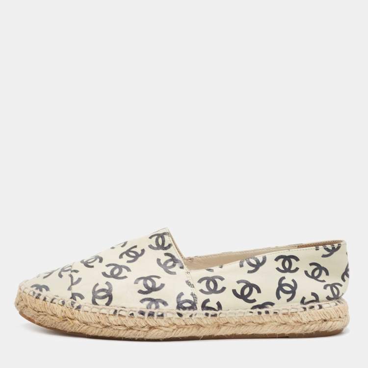 Chanel Cream/Black Leather CC Printed Espadrilles Size 38