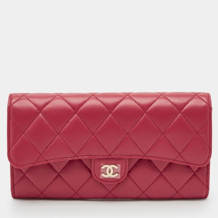 Chanel Dark Pink Quilted Leather Classic Flap Continental Wallet