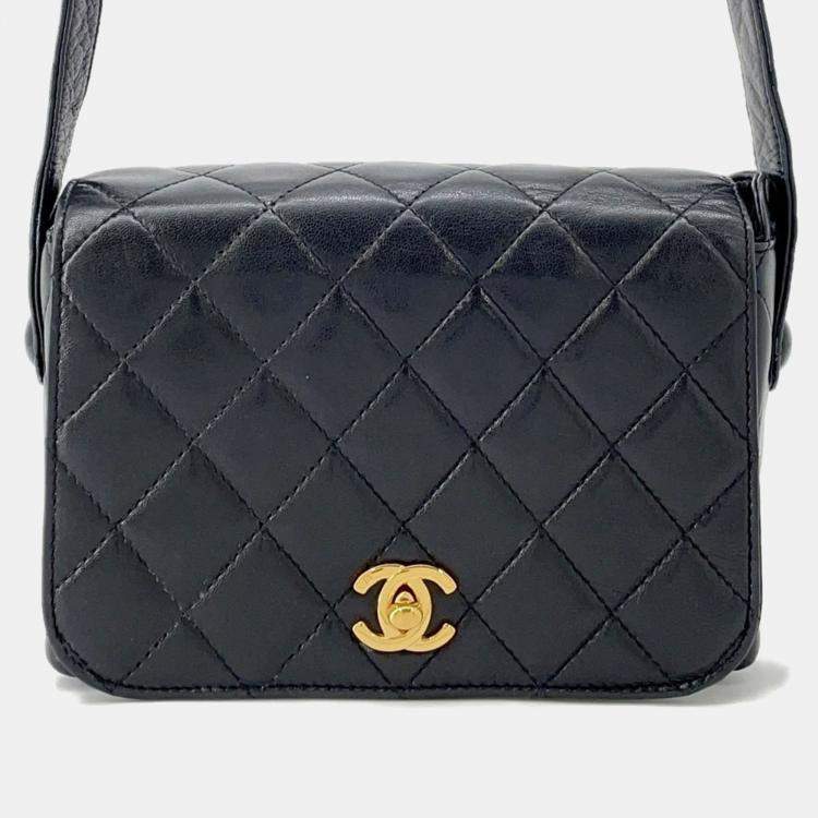 Pre Owned Chanel Full Flap Matelasse Black Lambskin Shoulder Bag