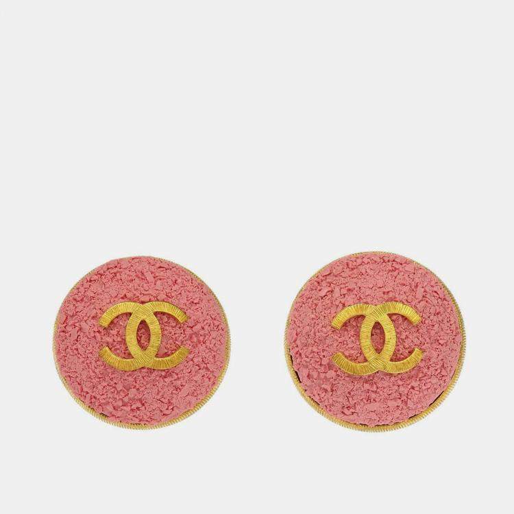 Pre Owned Chanel Gold Pink Button Earrings Clip-On