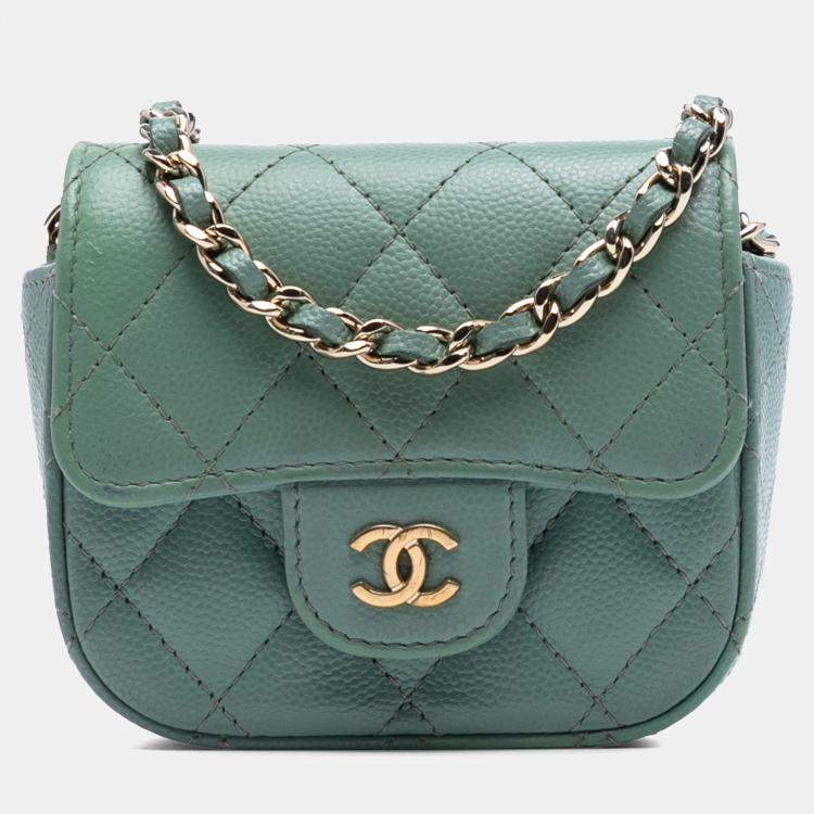 Chanel Green Micro Mini Classic Caviar Single Flap