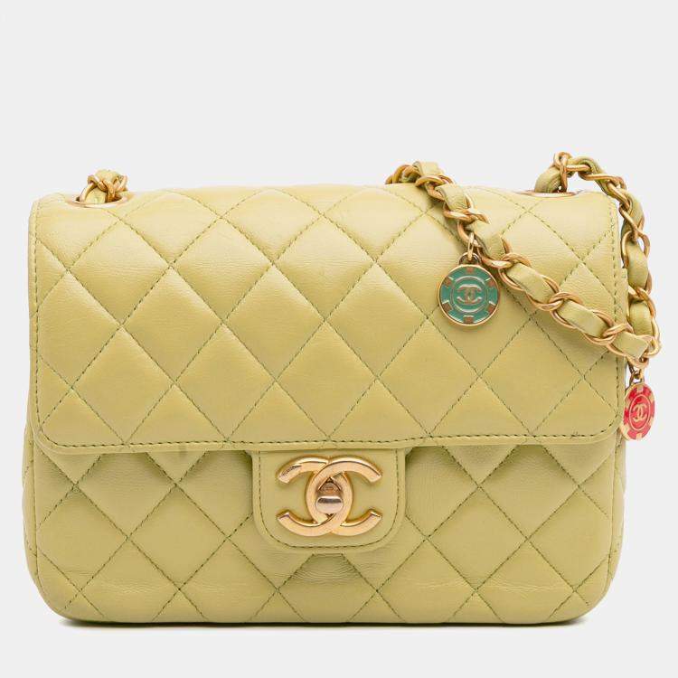 Pre Owned Chanel Green Mini Square Lambskin Casino Royale Charms Single Flap