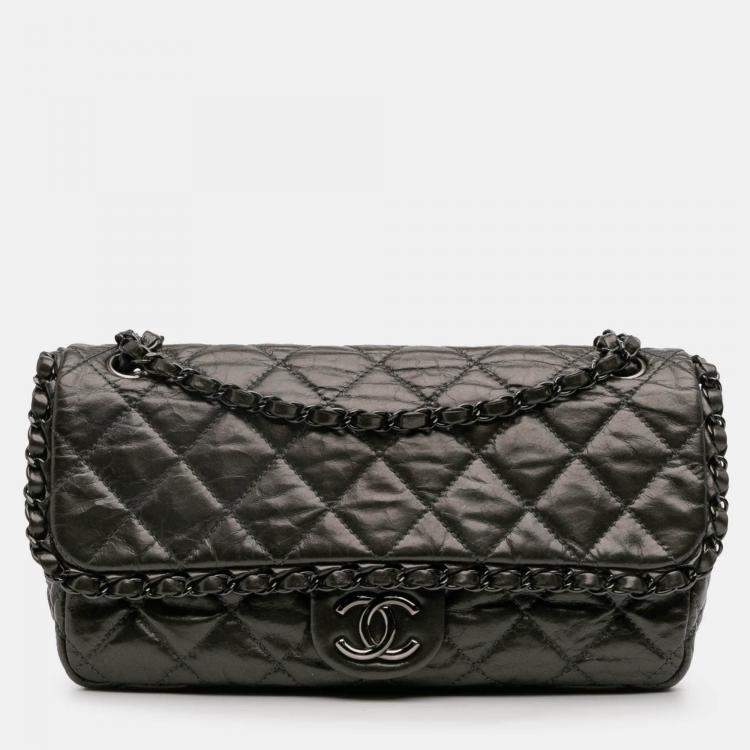 Chanel Grey Medium Quilted Metallic Aged Calfskin Chain Me Flap