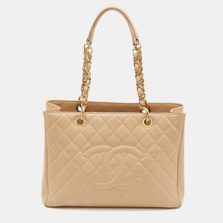 Chanel GST Beige Quilted Caviar Leather Grand Shopping Tote