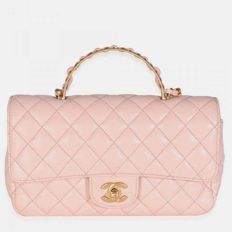 Chanel Light Pink Quilted Lambskin Small Metal Top Handle Flap Bag