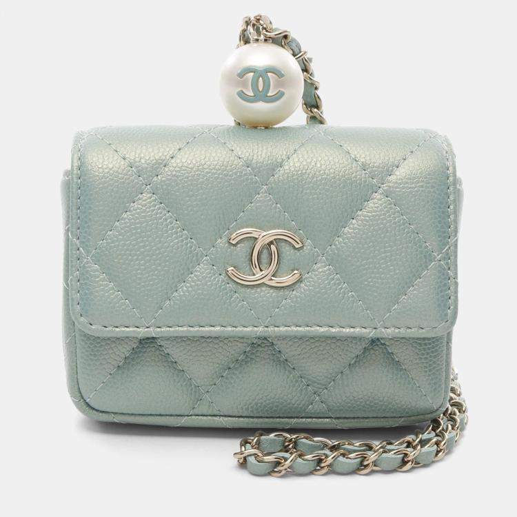 Chanel Matelasse Chain Flap Coin Purse Calfskin Green