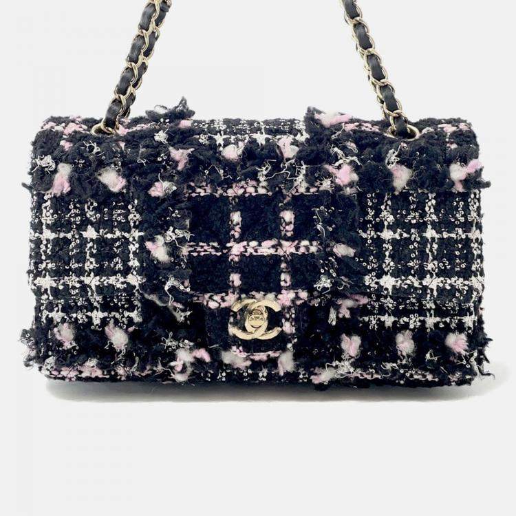 Chanel Matelasse Chain shoulder Bag Black/White/Pink Tweed Lambskin Sequins Size 25
