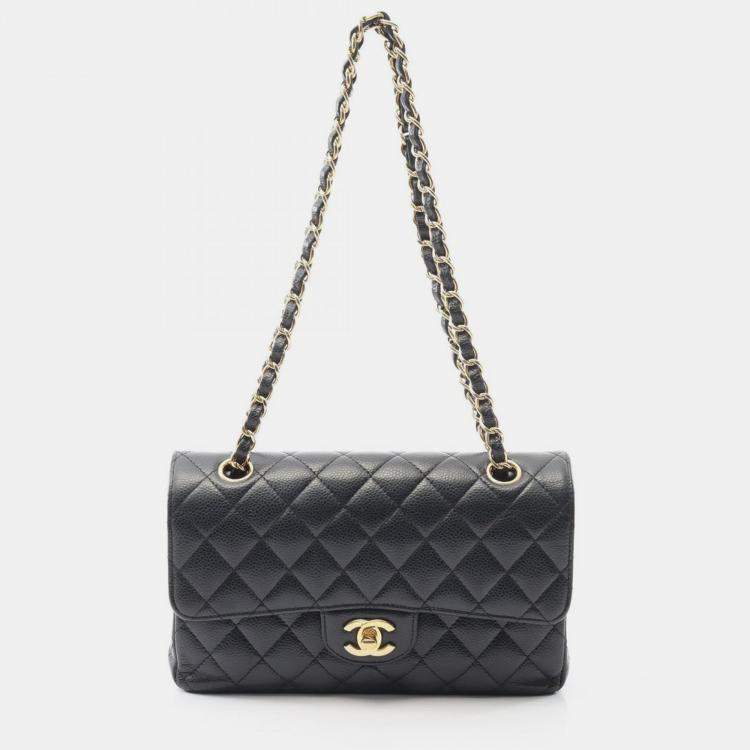 Chanel Matelasse W Flap Chain Shoulder Bag Calf Leather Black