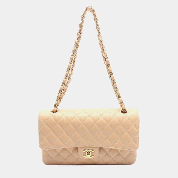 Chanel Matelasse W Flap Chain Shoulder Bag Leather Beige
