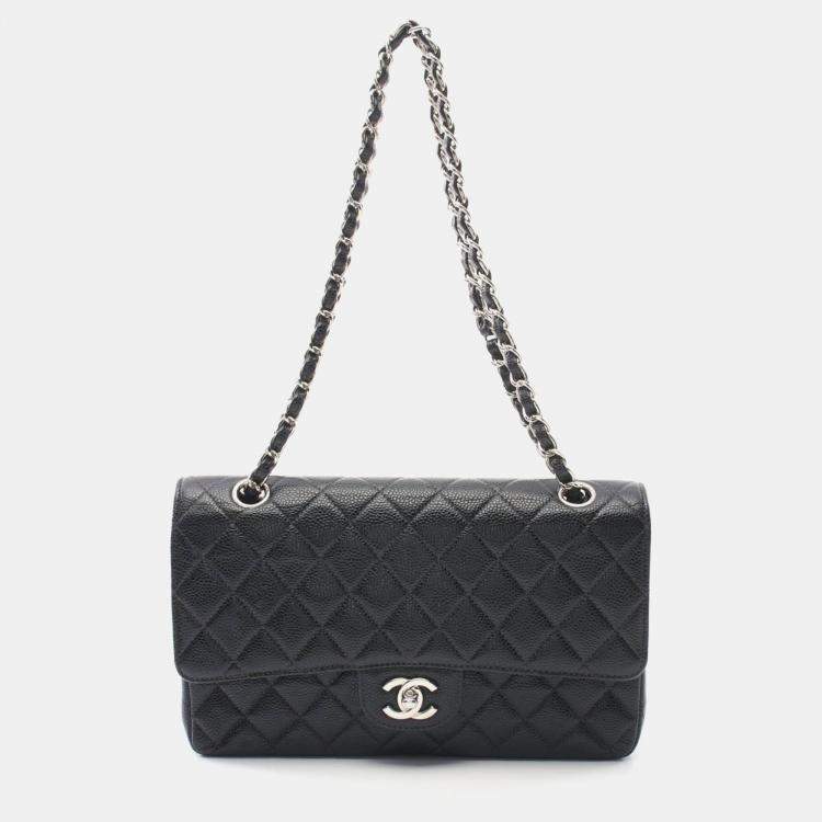 Chanel Matelasse W Flap Chain Shoulder Bag Leather Black