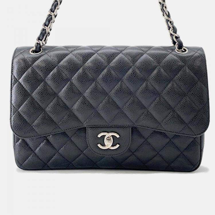 Chanel Matelasse W Flap Chain shoulder Black Caviar Leather Size 30