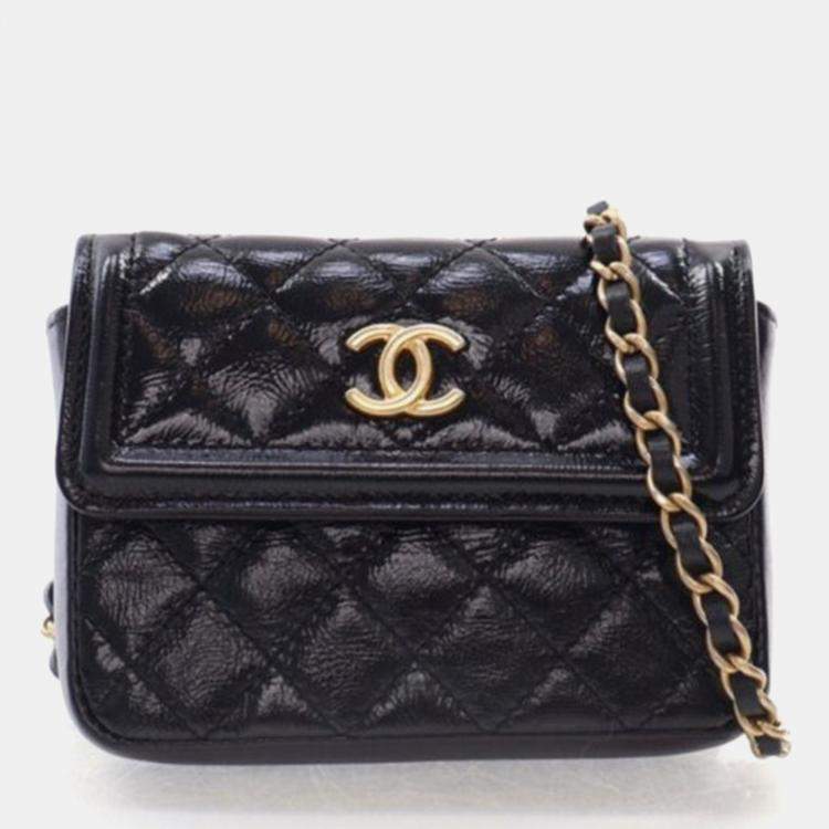 Pre Owned Chanel Mini Black Shiny Calfskin Waist Belt Bag