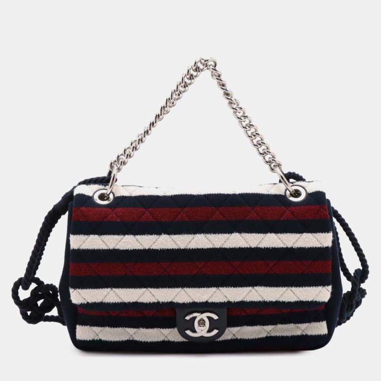 Chanel Multicolor Jumbo Stripe Jersey Felt and Rope Flap
