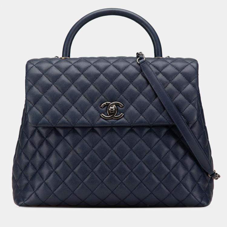 Pre Owned Chanel Navy Blue Large Caviar Coco Top Handle Bag