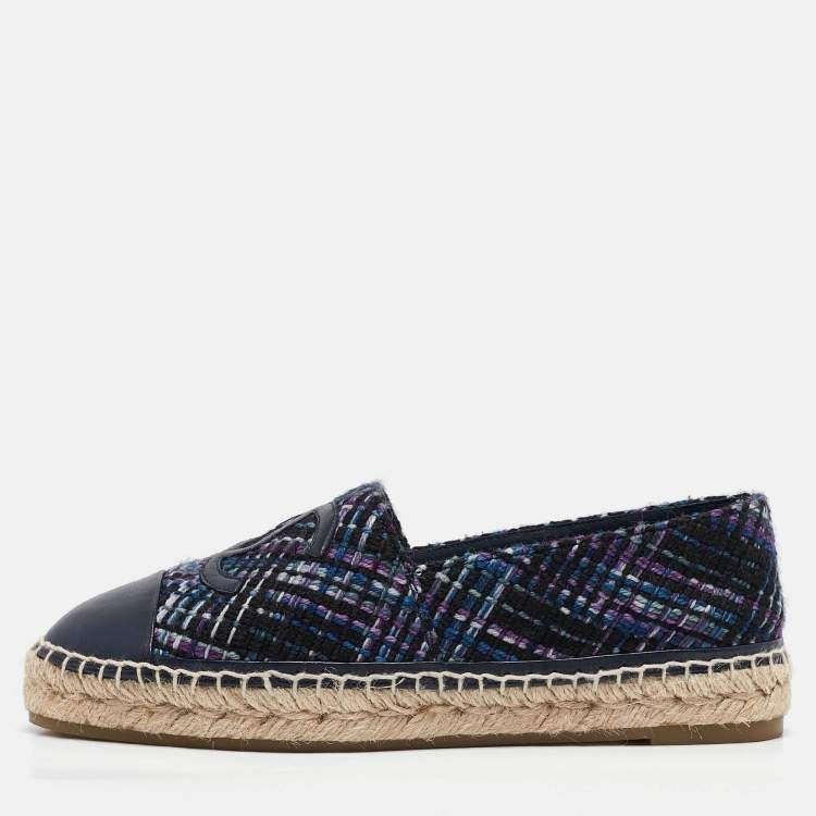 Chanel Navy Blue Tweed and Leather CC Cap Toe Espadrille Flats Size 41