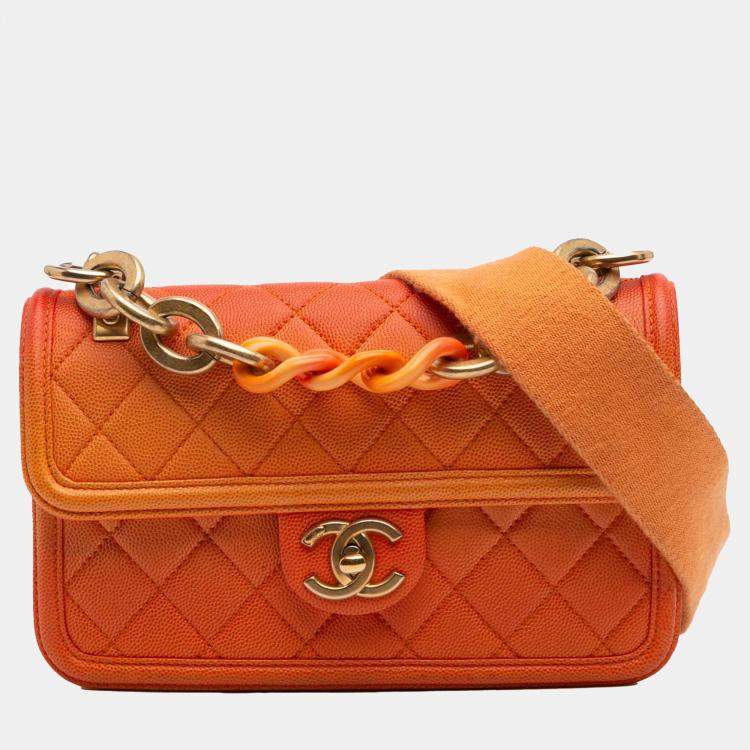 Chanel Orange Small Quilted Caviar Sunset On The Sea Flap