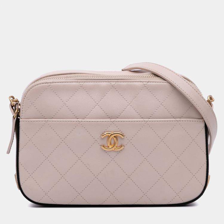 Pre Owned Chanel Pink Calfskin Grosgrain Stitched Button Up Camera Case