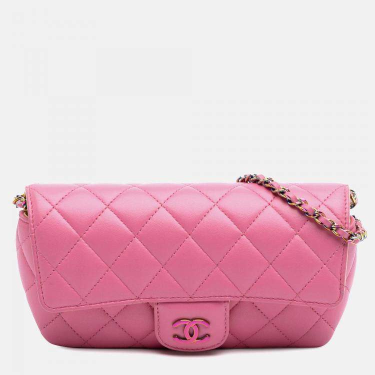Chanel Pink CC Quilted Lambskin Sunglasses Case with Chain