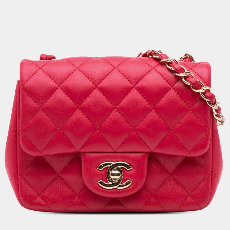 Chanel Pink Lambskin Quilted Mini Square Classic Single Flap Bag