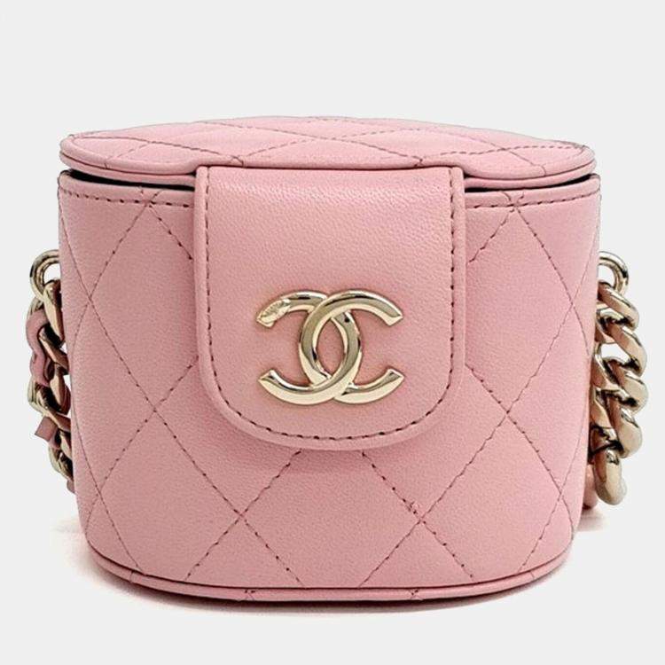 Pre Owned Chanel Pink Leather Vanity Cosmetic Mini Crossbody Bag