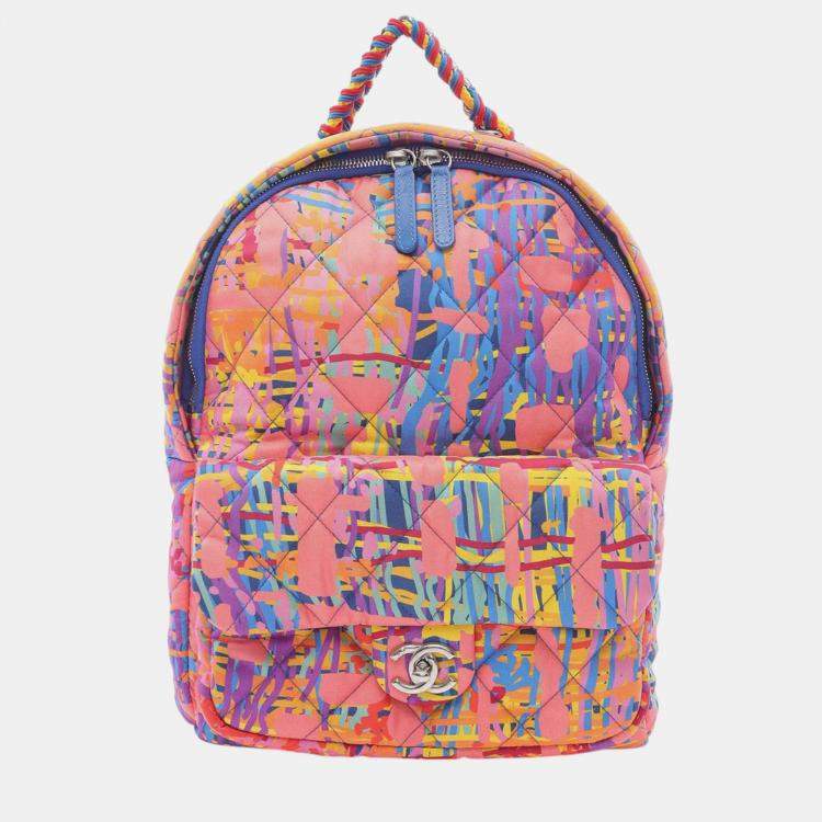 Chanel Pink Quilted and Printed Nylon Foulard Backpack