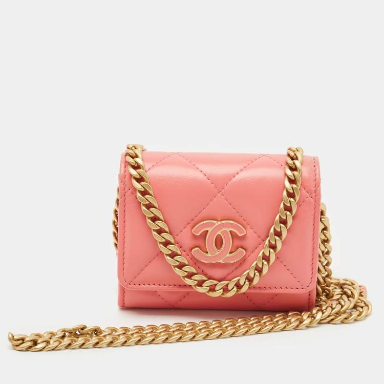 Pre Owned Chanel Pink Quilted Leather Pending CC Card Holder on Chain