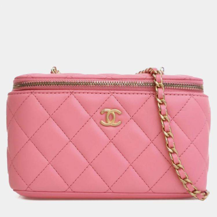 Chanel Pink Small Quilted Lambskin Pearl Crush Vanity Case with Chain