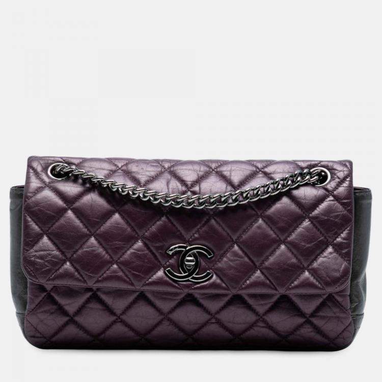 Pre Owned Chanel Purple Small Bicolor Quilted Aged Calfskin Lady Pearly Flap
