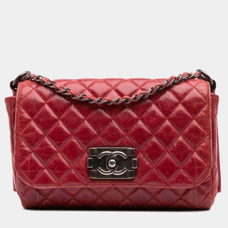 Chanel Red Calfskin Quilted Glazed Soft Boy Flap Bag