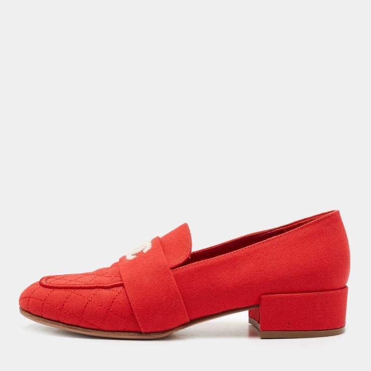 Chanel Red Canvas Beaded CC Loafer Pumps Size 36