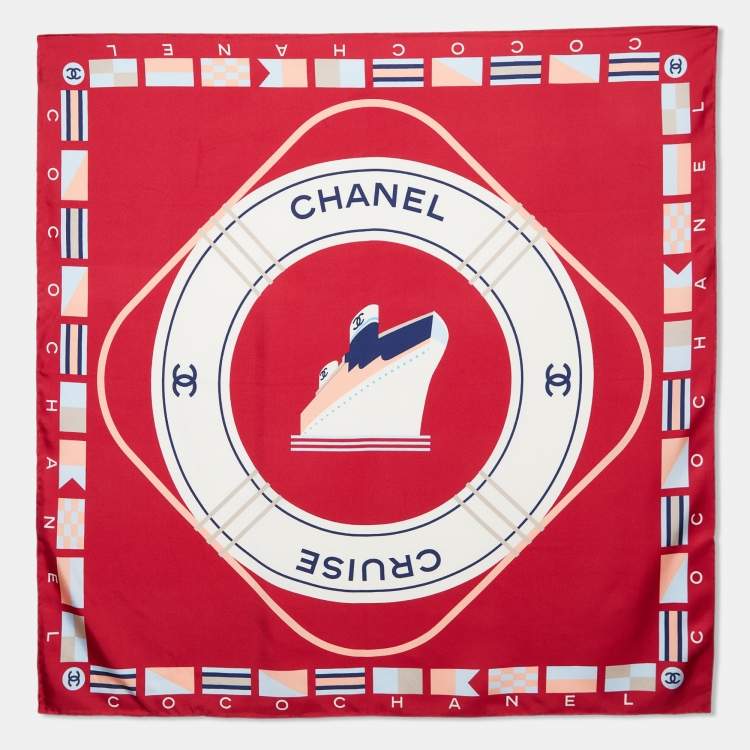 Chanel Red Chanel Cruise Print Silk Square Scarf
