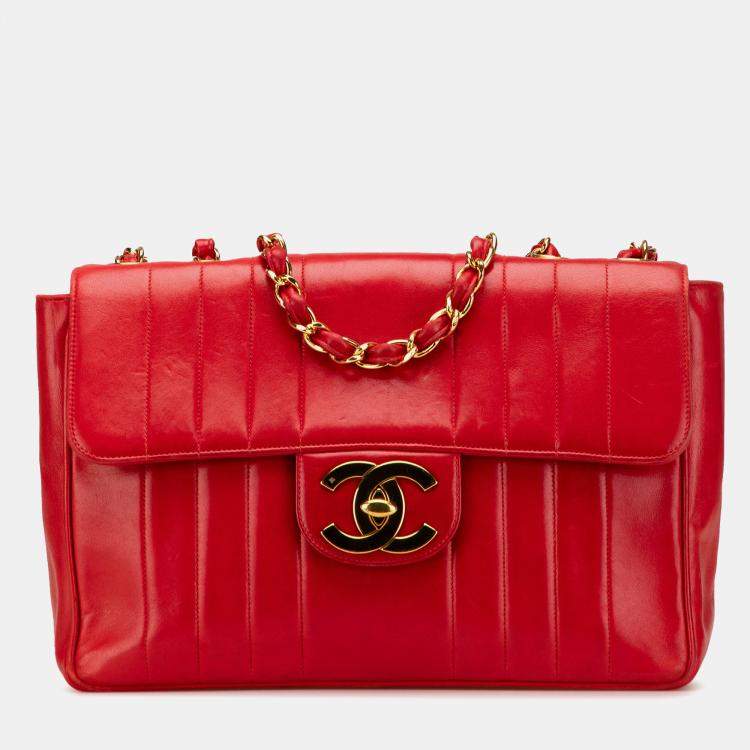 Pre Owned Chanel Red Jumbo XL Vertical Quilt Lambskin Single Flap