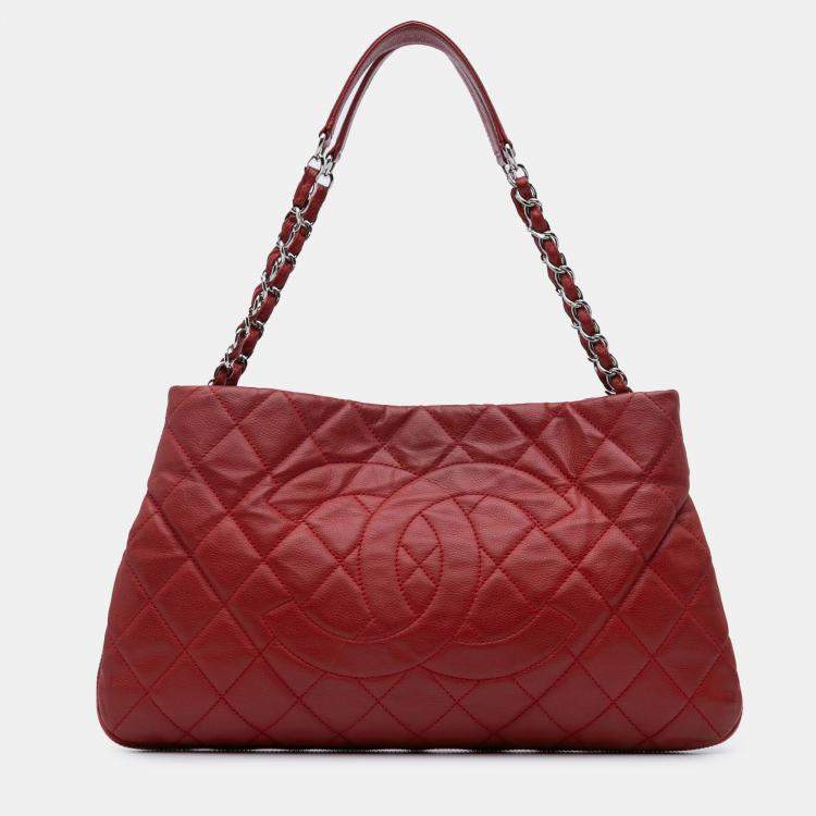 Chanel Red Quilted Caviar Expandable Zip Tote