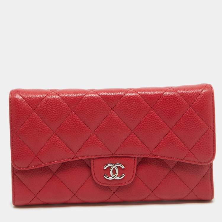 Chanel Red Quilted Caviar Leather Classic L Flap Wallet
