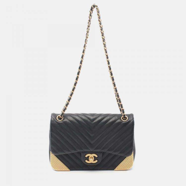 Pre Owned Chanel Rock The Corner Black Leather Flap Shoulder Bag