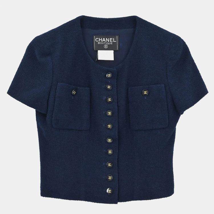 Pre Owned Chanel Single Breasted Jacket Navy #38