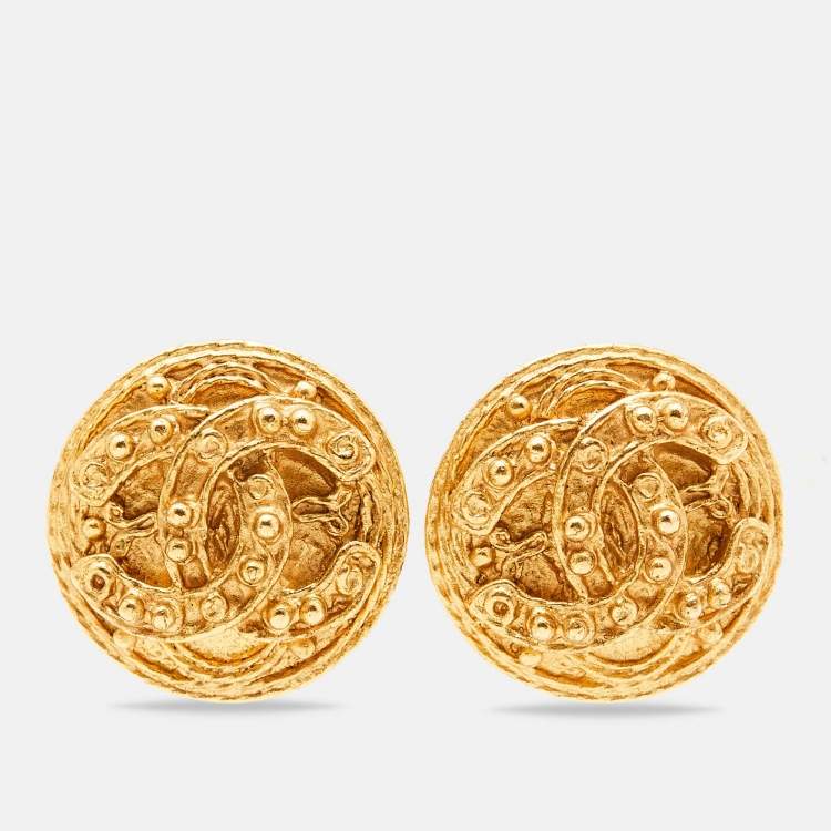 Chanel Vintage CC Gold Tone Button Clip On Earrings