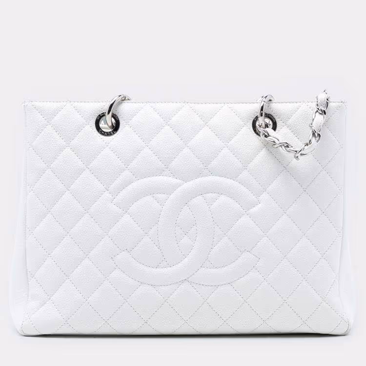 Pre Owned Chanel White Caviar Grand Shopping Tote