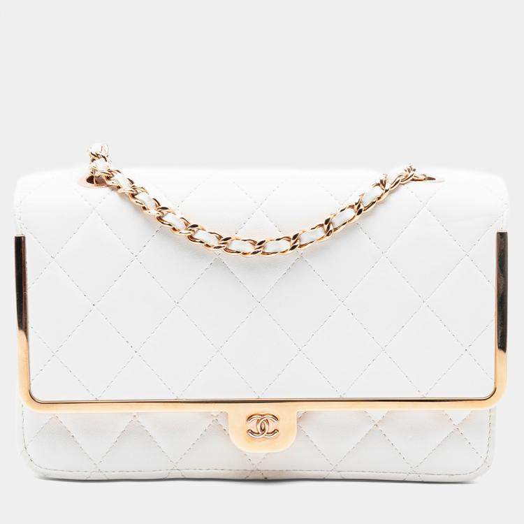 Chanel White CC Quilted Lambskin Frame Wallet On Chain
