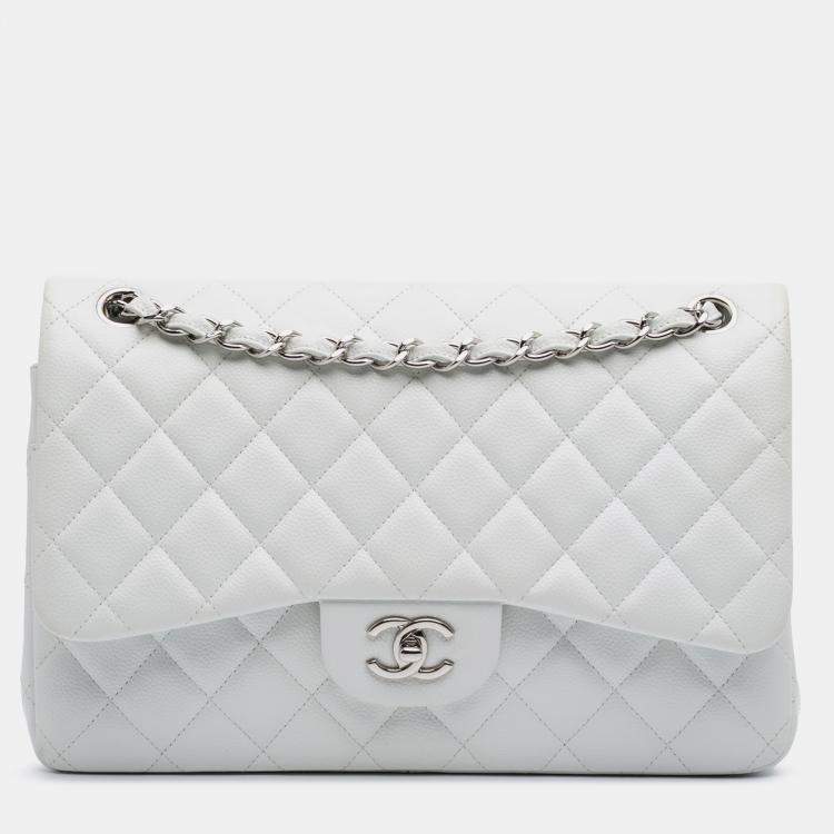 Pre Owned Chanel White Jumbo Classic Caviar Double Flap