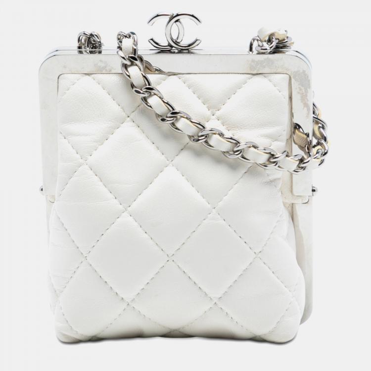 Pre Owned Chanel White Lambskin and Acrylic Kiss Clutch with Chain