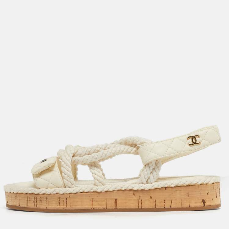 Pre Owned Chanel White Leather and Rope Dad Slingback Sandals Size 36