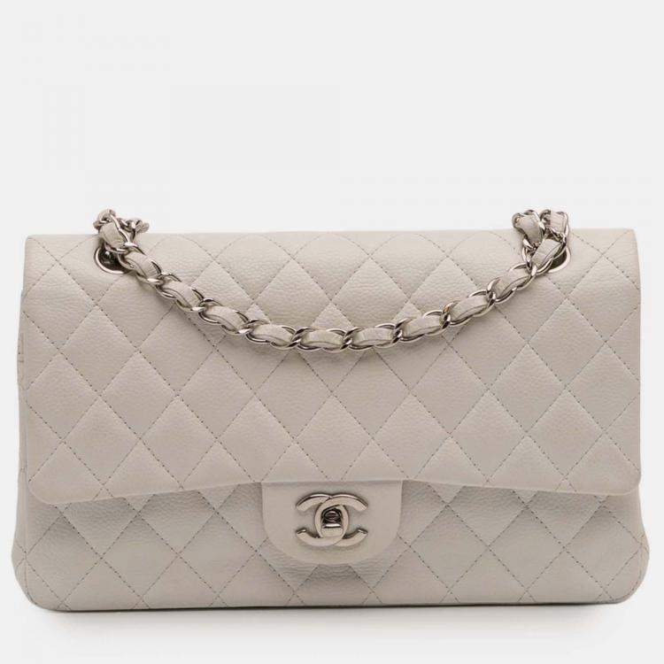 Pre Owned Chanel White Medium Classic Caviar Double Flap