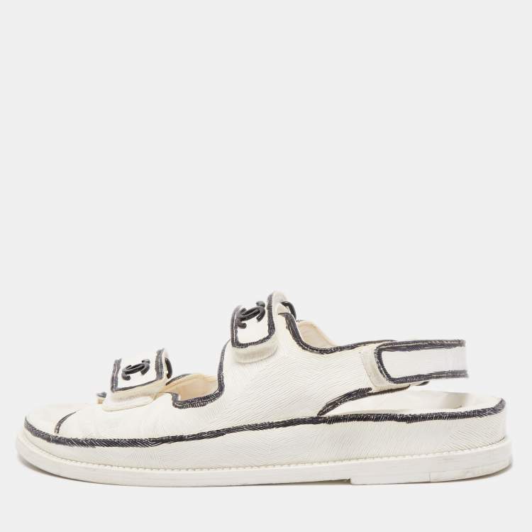 Chanel White Textured Leather Dad Sandals Size 38.5