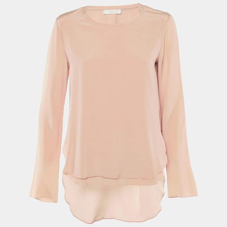 Pre Owned Chloé Peach Silk Layered Long Sleeve Top M