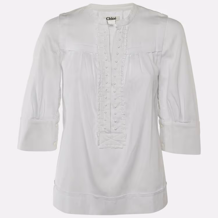 Pre Owned Chloe White Cotton Bead Button Detail Blouse S