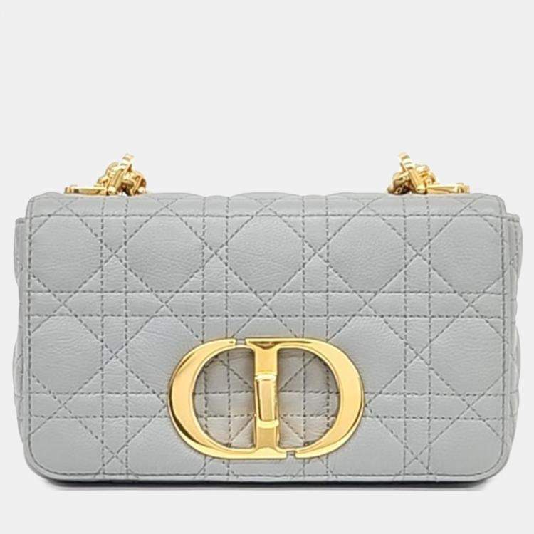 Christian Dior Grey Leather Cannage Small Caro Shoulder \ Bag